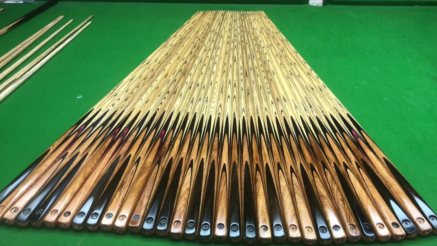 Mountain Lake Aesthetics Snooker & Pool Cue Set - Handcrafted 57" Zebrano & Ebony Design #T90SC31